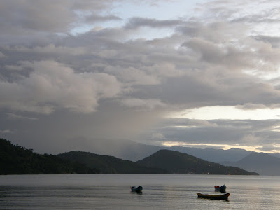 Amanhecer do dia 28 de abril. Acordamos cedo para ver o sol nascer e tingir as nuvens esparsas sobre a região de Paraty.
